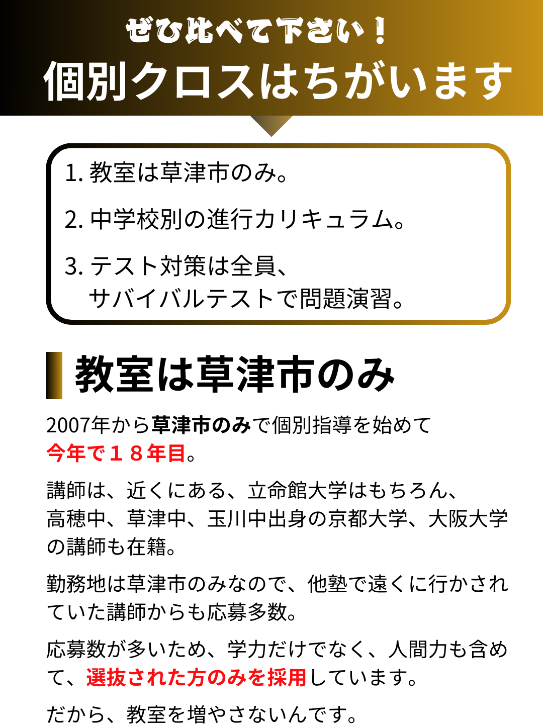 2007年から草津市だけで個別指導一筋。
