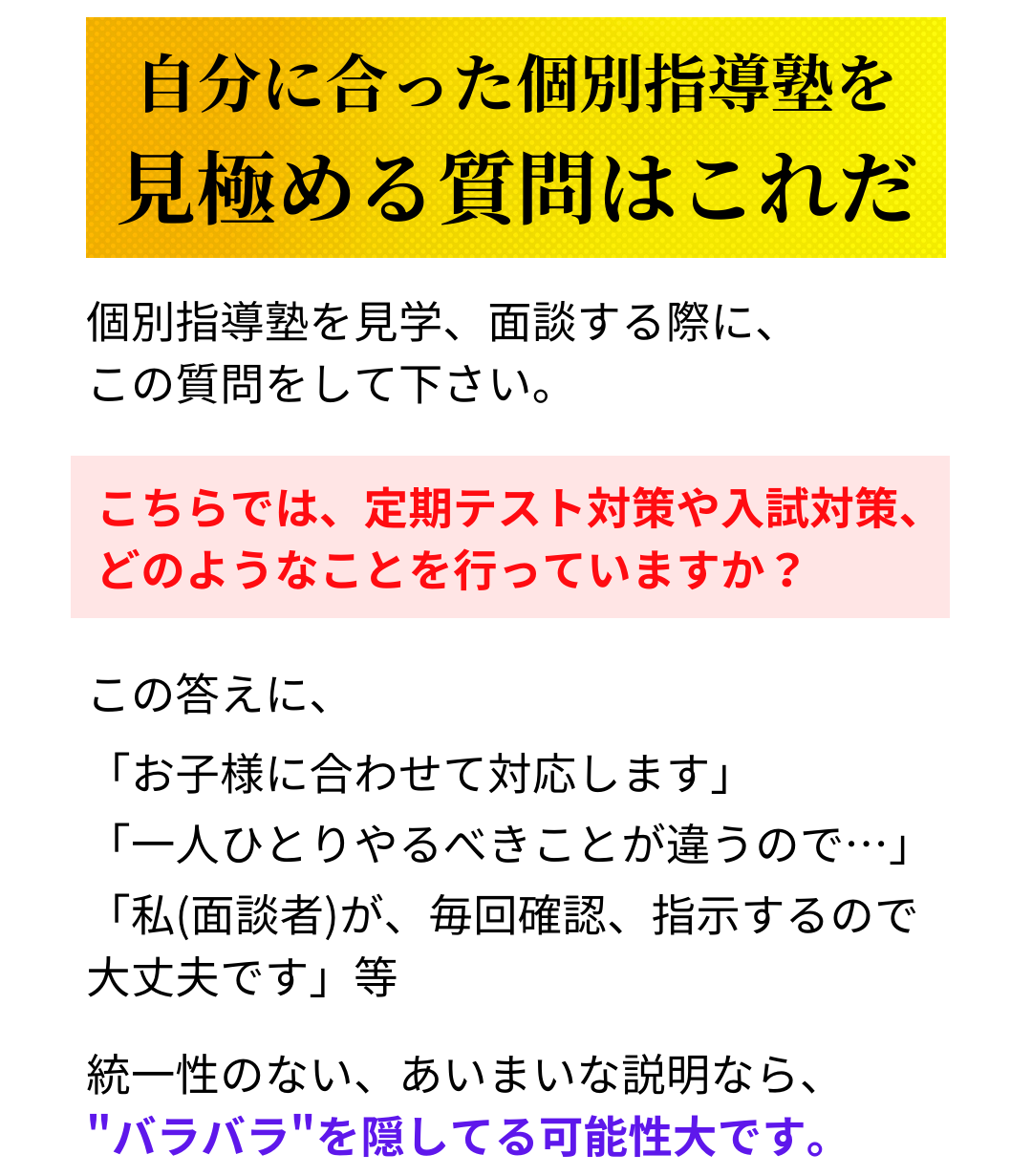 高穂中・草津中・玉川中のことは、テスト対策も進路指導もお任せください!一人一人に合った学習方法のアドバイスはもちろん、各中学校に合わせたテスト対策も実施しています!「今の塾では質問できない」「勉強しているのに、成績がついてこない」等の、ご相談大歓迎です。