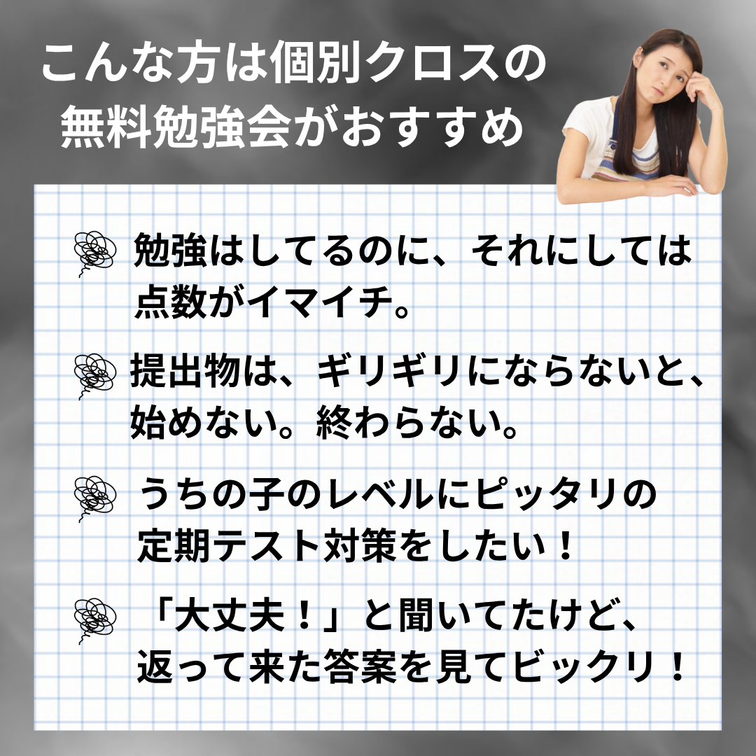 個別クロスで《最後の詰め》を徹底すると、テスト点数が一気に上がるケースもありました(^-^)/