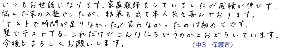 | 内容 | ・テスト対策 個別授業4回(1科目) ・定期テスト後の振り返り面談も実施 |
